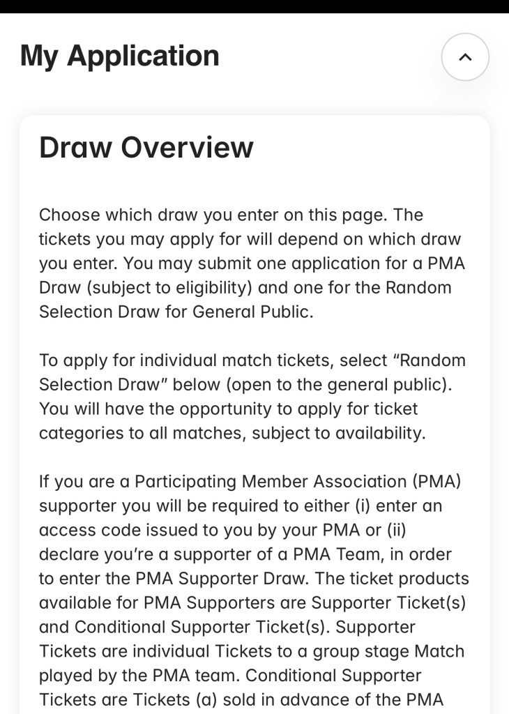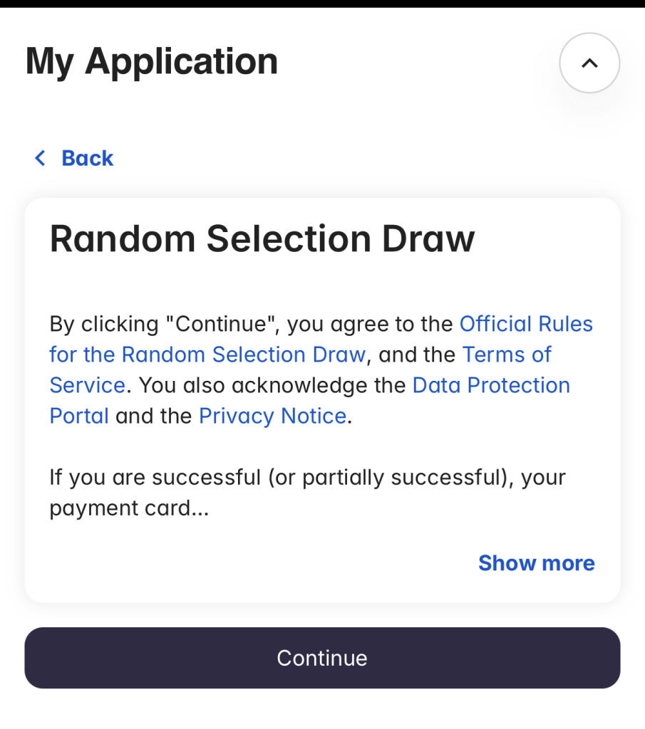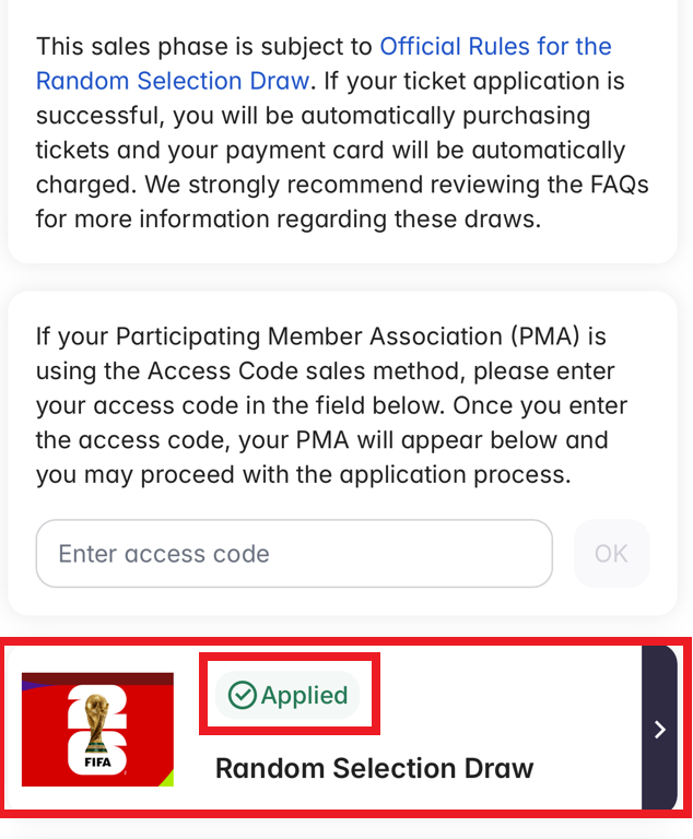 すでに申し込みが完了している場合は“Random Selection Draw”の箇所が“Applied”になっています。