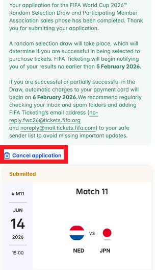 何度か質問をいただいたのですが、やっぱりゴール裏がいい、やっぱりクロアチアvsイングランド戦も見たい、クレジットカードを限度額の大きい会社のものにしたいという風に方針変更がある方もいらっしゃると思います。今日はその様な方に一度入れたチケットのキャンセル方法をお伝えしたいと思います。