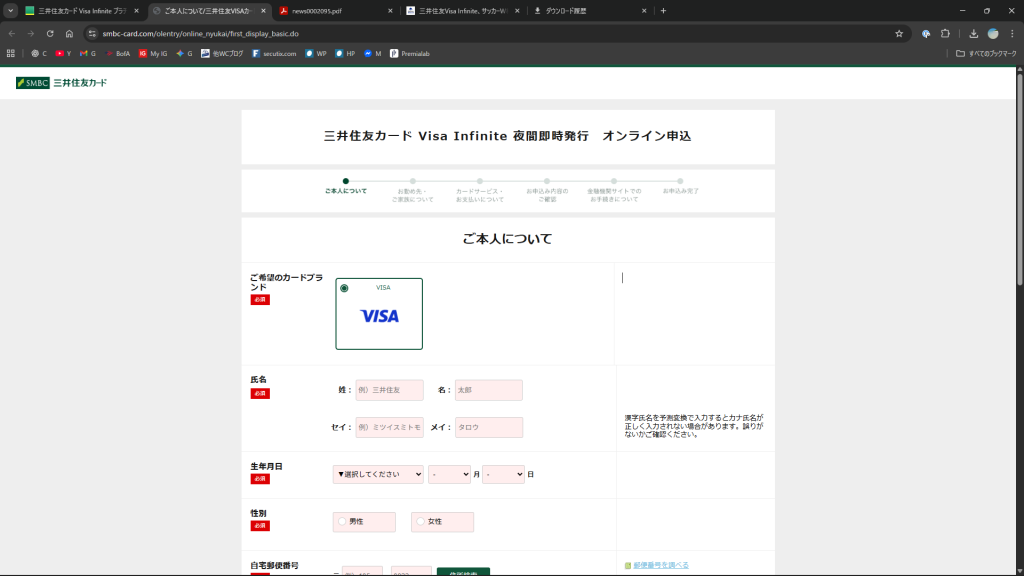 The application requirements for Sumitomo Mitsui Card Visa Infinite state: